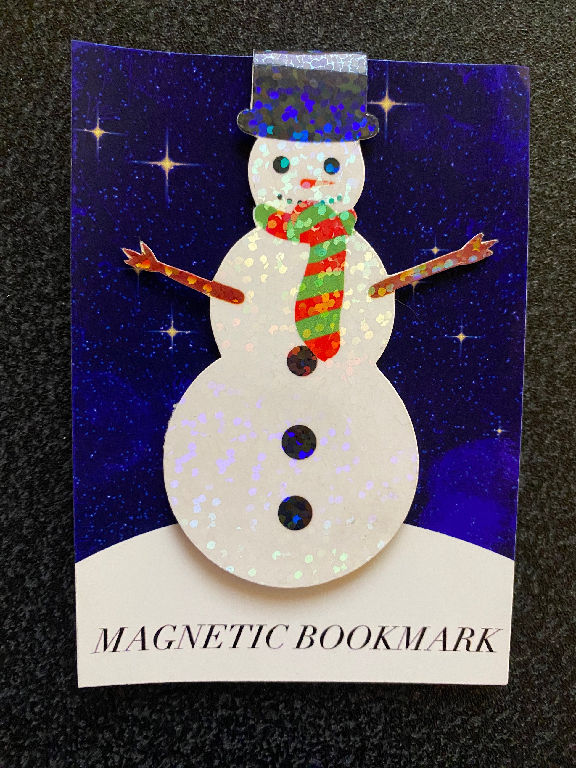 Keep your place in style with this charming snowman magnetic bookmark. Perfect for book lovers of all ages, this delightful design features a cheerful snowman character that adds a touch of winter magic to your reading. The strong magnetic closure keeps pages secure without damaging them, making it ideal for hardcovers and paperbacks alike. A whimsical gift for seasonal readers or a fun addition to your own collection.